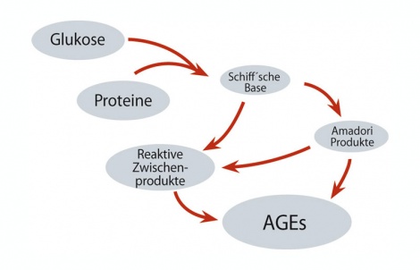 AGEs spielen eine entscheidende Rolle in der Entwicklung altersabhängiger, chronischer Erkrankungen wie Diabetes, Nierenerkrankung und kardiovaskulären Leiden.